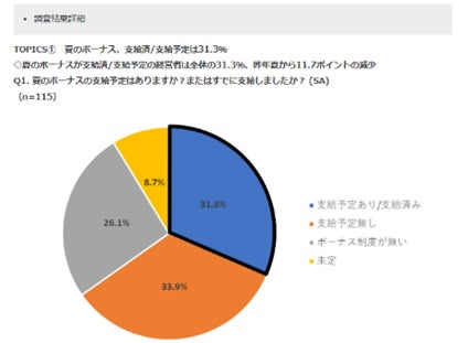 TOPICS① 夏のボーナス、支給済/支給予定は31.3%