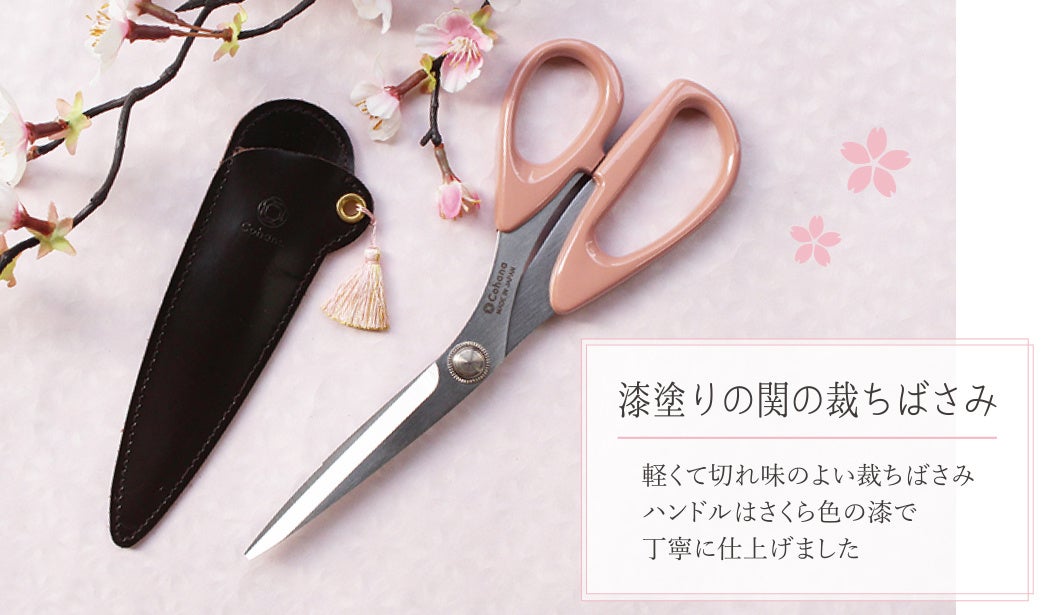 さくら色の漆が艶やかな、軽くて持ちやすい裁ちばさみ。