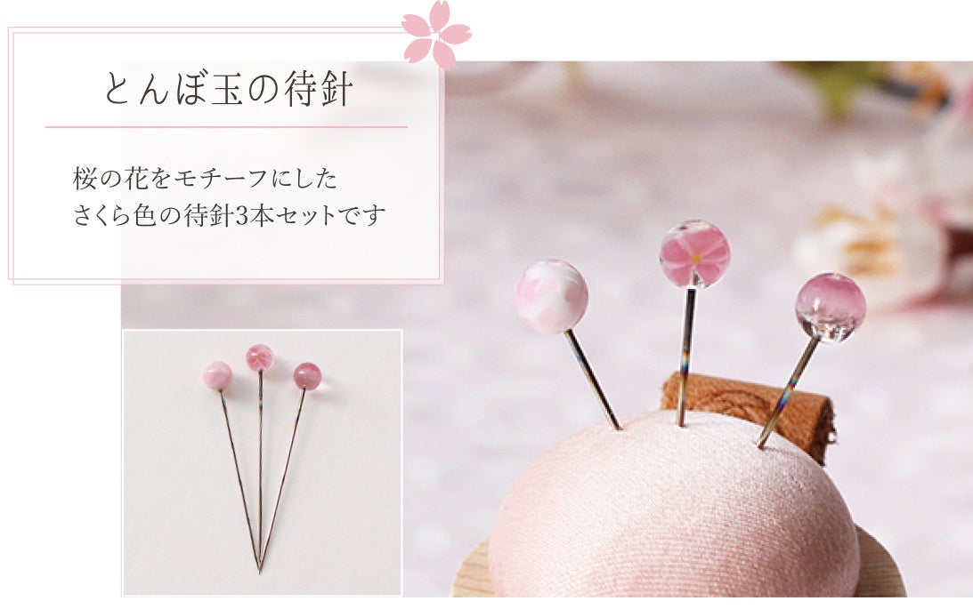 桜の花のモチーフとやさしいさくら色の待針セット。