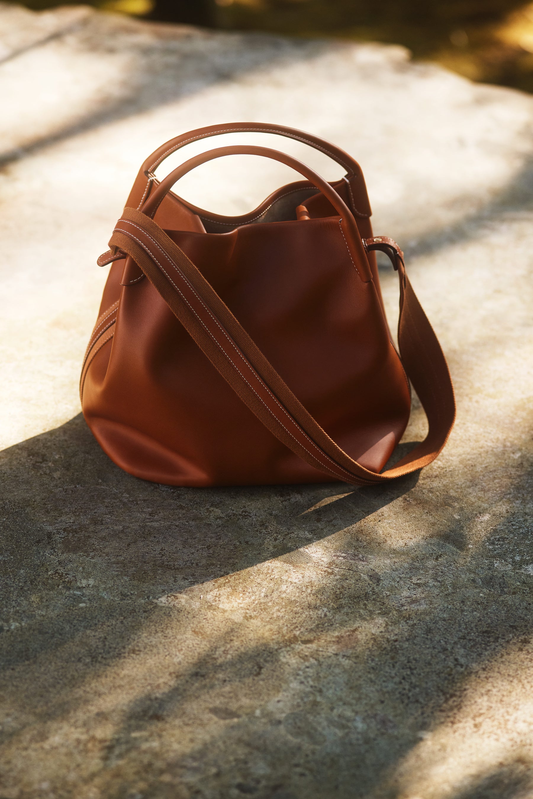 継ぎ目のないボディが特徴の《ベイル》は、手縫いの持ち手、同系色のスエードの裏地、取り外し可能なインナーポーチが付属しています。また、2種類のサイズ(L、マイクロ)と、ネイビーブルー、クンメル、ウォームタンなどの定番色から、ティールーム、ダークセリーズ、カンドリアマーブルなどのシーズナルカラーまで幅広いカラーバリエーションが揃っており、あらゆるスタイルやシーンにも最適で、さまざまな物や思い出を時空を超えて運ぶことができるのです。