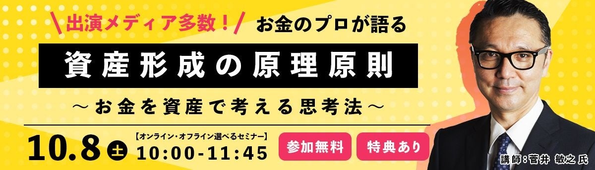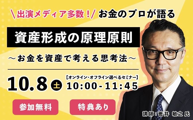【菅井 敏之氏 登壇!】お金のプロが語る!資産形成の原理原則セミナー10/8(土)開催