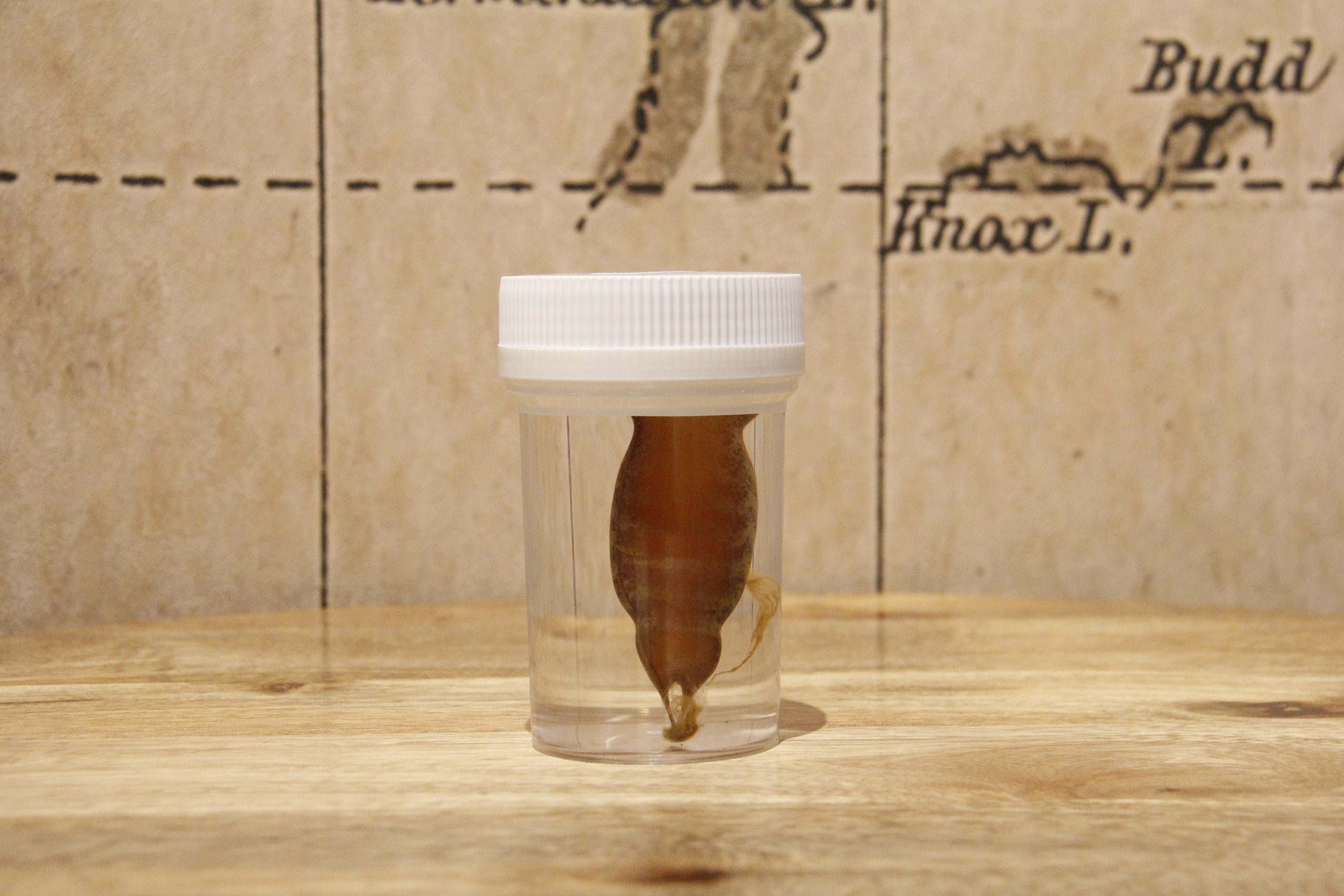 当館のサメ水槽から回収した本物の歯と卵殻です。卵殻標本は水を1か月に1回程度交換していただければ長期保存が可能となっています。数量限定の商品となります。