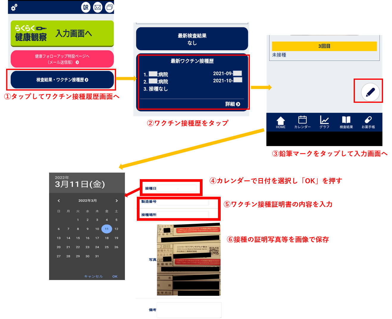 ⑤接種証明書をもとに、ワクチン製造番号等を入力