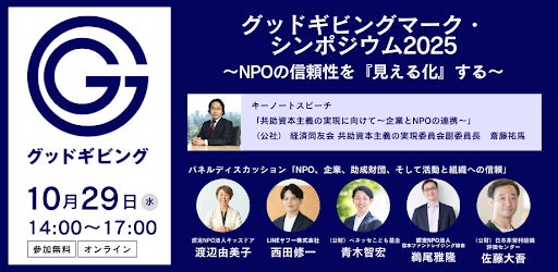 グッドギビングマークの最初の認証団体が誕生することを記念して、シンポジウムを東京で10月29日(水)に対面、オンラインのハイブリッドで開催いたします。シンポジウムの中で、グッドギビングマーク認証団体に対する認証授与式を実施する予定です。