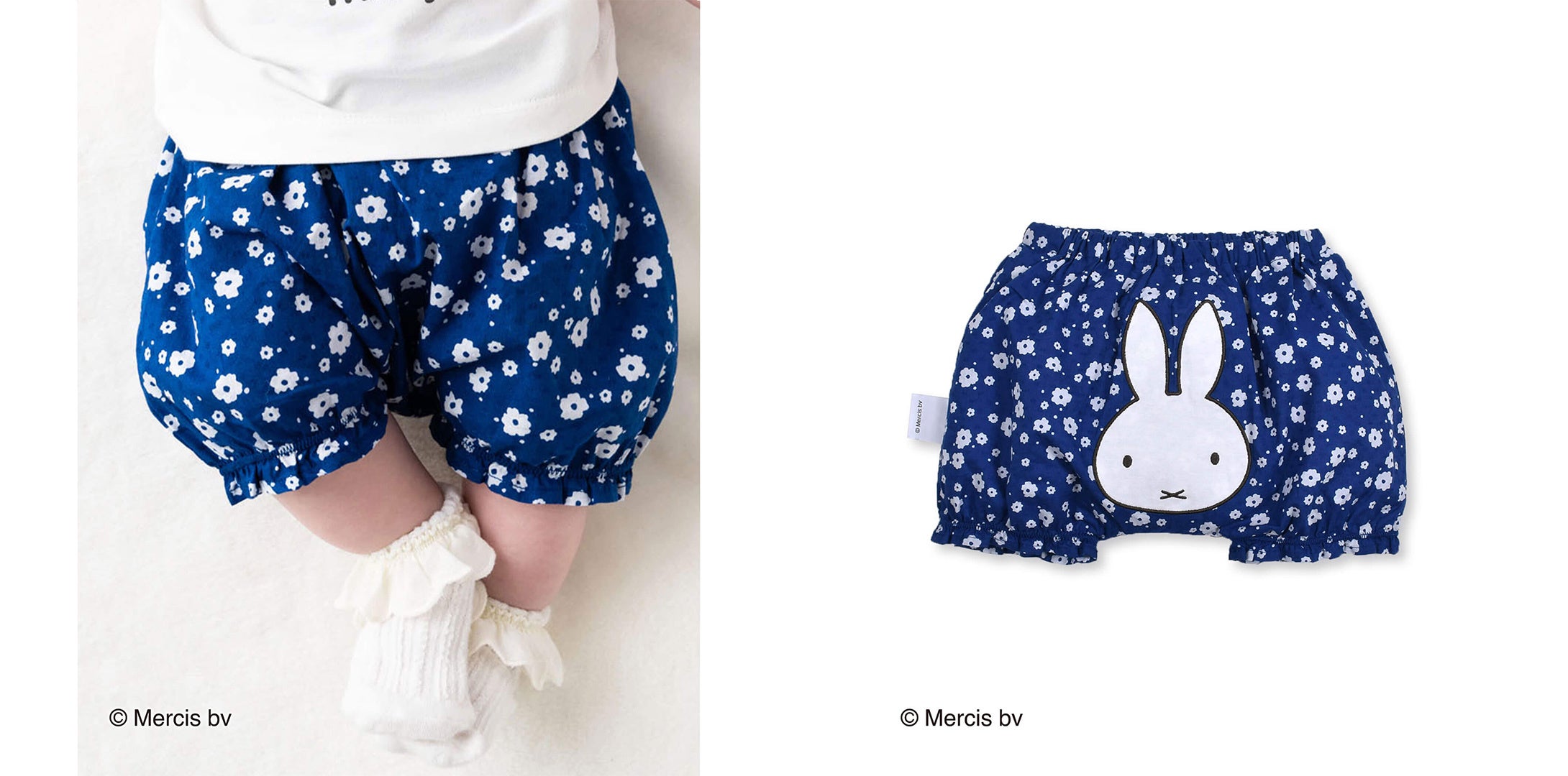 おしりのミッフィーのパッチワークが可愛いブルマパンツで、ブロードの花柄がプリントされています。