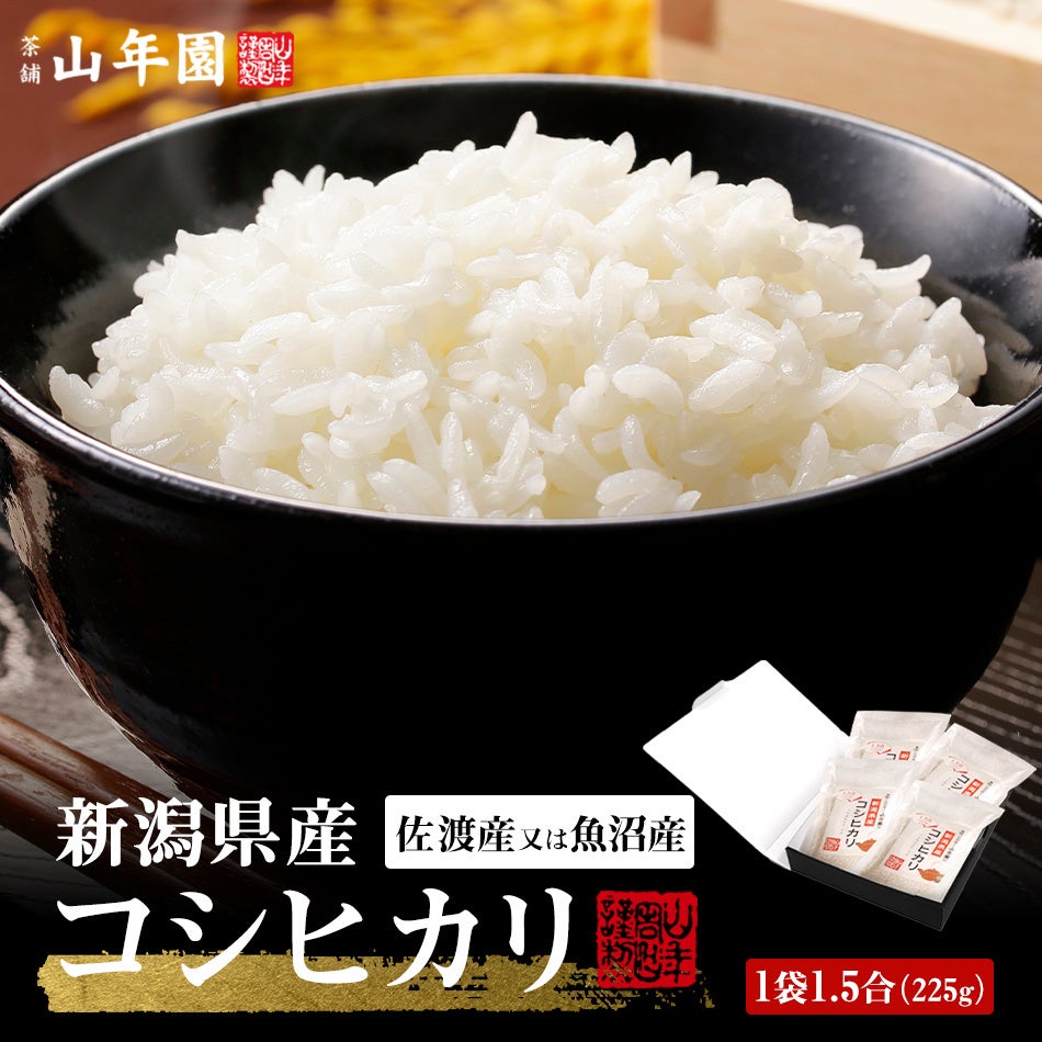 米 新潟県佐渡産または魚沼産 コシヒカリ 1.5合(225g)×4袋セット 3,600円