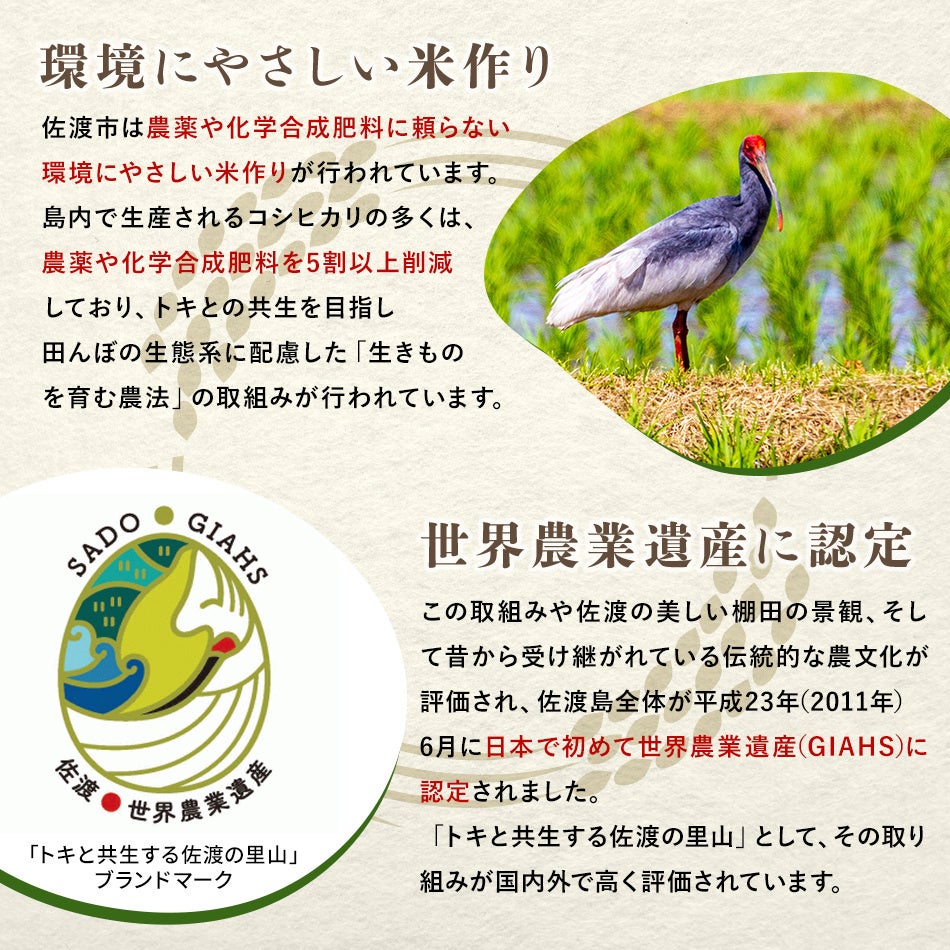 中でも佐渡市は国の天然記念物、朱鷺の餌場確保と生物多様性の米作りを心掛けており、「生きものを育む農法」の取り組みが行われています。