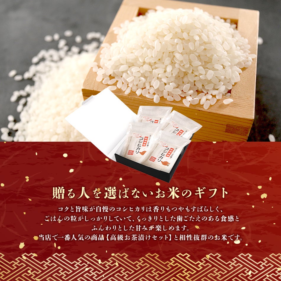 当店で一番人気の商品【高級お茶漬けセット】と相性抜群のお米です。ぜひご一緒にお召し上がりください。