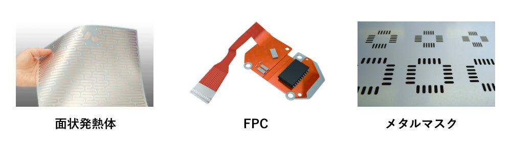 用途としては、車載等にも使用される面状発熱体やFPC補強板、電子機器に使用されるメタルマスク等があり、フィルム等を張り付けた複合材として用いられます。特に30μm以下で600mm近い幅で生産する素材メーカは少なく、加工歩留や生産性向上に貢献しております。