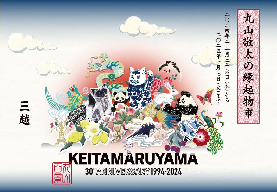 KEITA MARUYAMAは、2024年12月26日(木)より2025年1月7日(火)まで、銀座三越本館1階 GINZAステージにて、ポップアップイベント 丸山百景 KEITA MARUYAMA 30TH ANNIVERSARY「丸山敬太の縁起物市 in 銀座三越」を開催いたします。