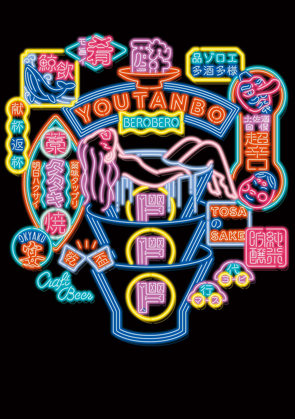 ・酒をテーマに「酔うたんぼ」(土佐弁の酔っ払い)というデザインコンセプトの元、 高知と酒文化にまつわるモチーフを描いています。
