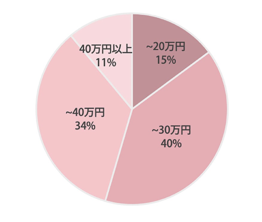 結果は20万円〜30万円が40%で一番多く、次いで30万円〜40万円が僅差で多い回答となった。