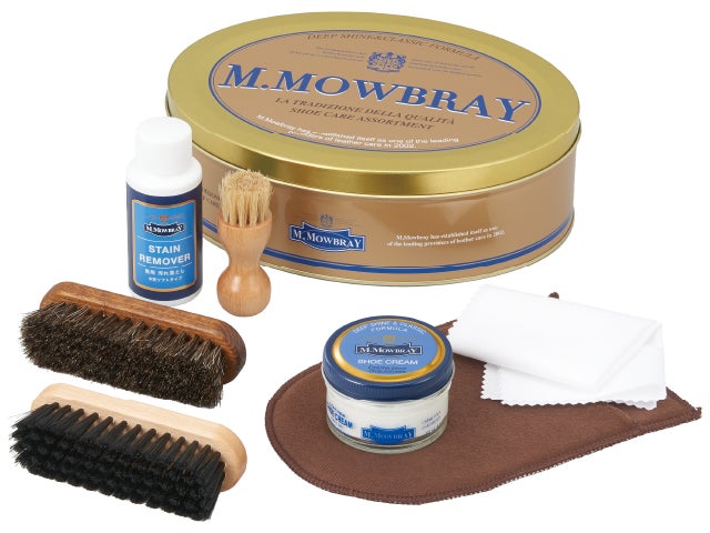 A~Cの全講座には基本カリキュラムとして「靴磨き実技」が含まれております。この実技の際にご使用いただくシューケアキットはお一人1セットずつお持ち帰りいただいており、受講者さまより大変ご好評をいただいております。