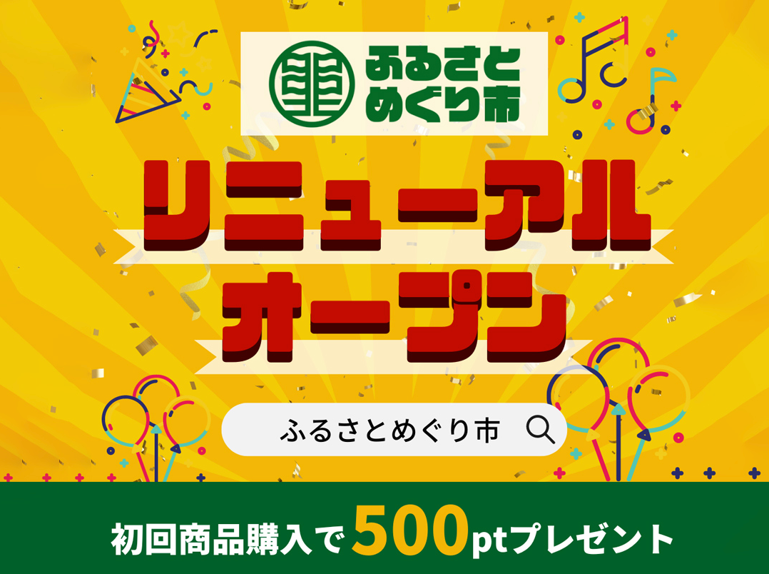 初回購入時<500ポイントプレゼント>実施中!“地方創生”で注目のショッピングサイト【ふるさとめぐり市】 さらにお得に!さらに便利になって堂々リニューアルオープン!