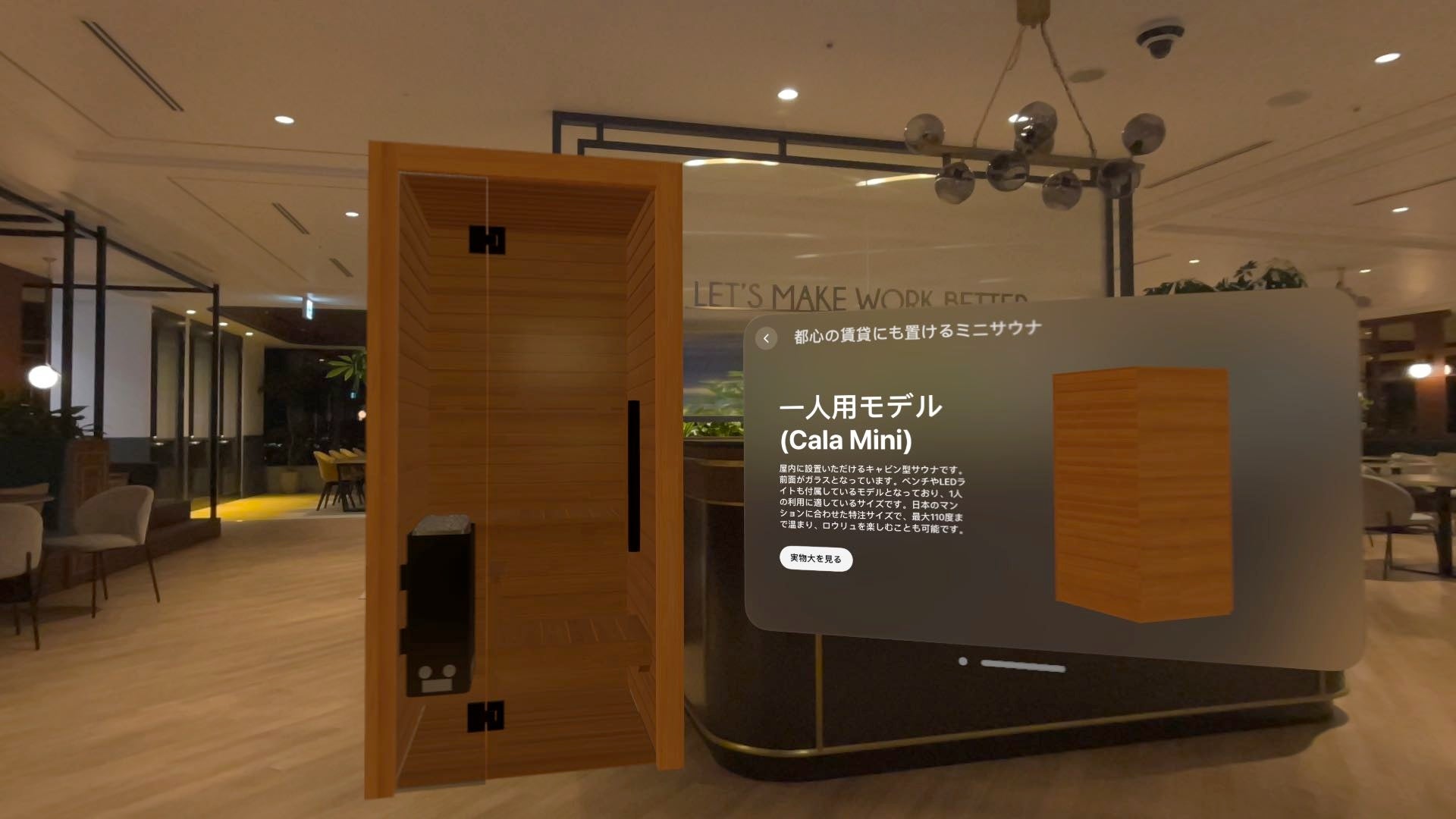 技術に不慣れなユーザーやApple Vision Proを所有していないユーザーにも、バーチャル空間で実物大のサウナ体験を提供し、リアルな場での体験を通して次世代のサウナ購入体験を提供して参ります。