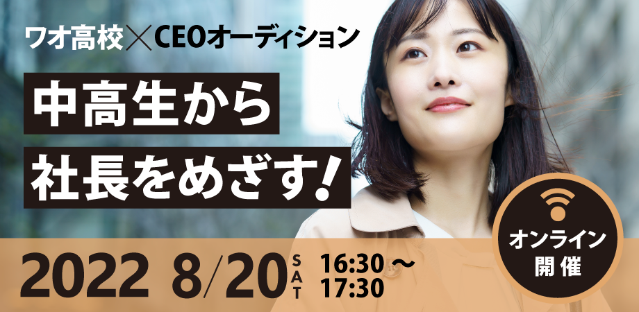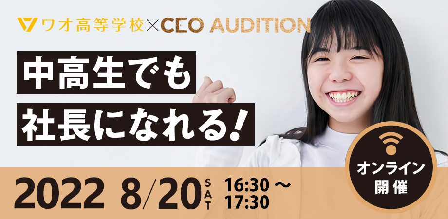 中高生でも社長になれる!起業を目指す中高生必見!ワオ高校×CEOオーディション!