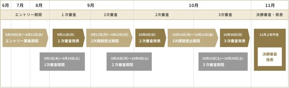 1次審査 ・・・ 9月1日(木)〜9月10日(土)/結果発表:9月11日(日)