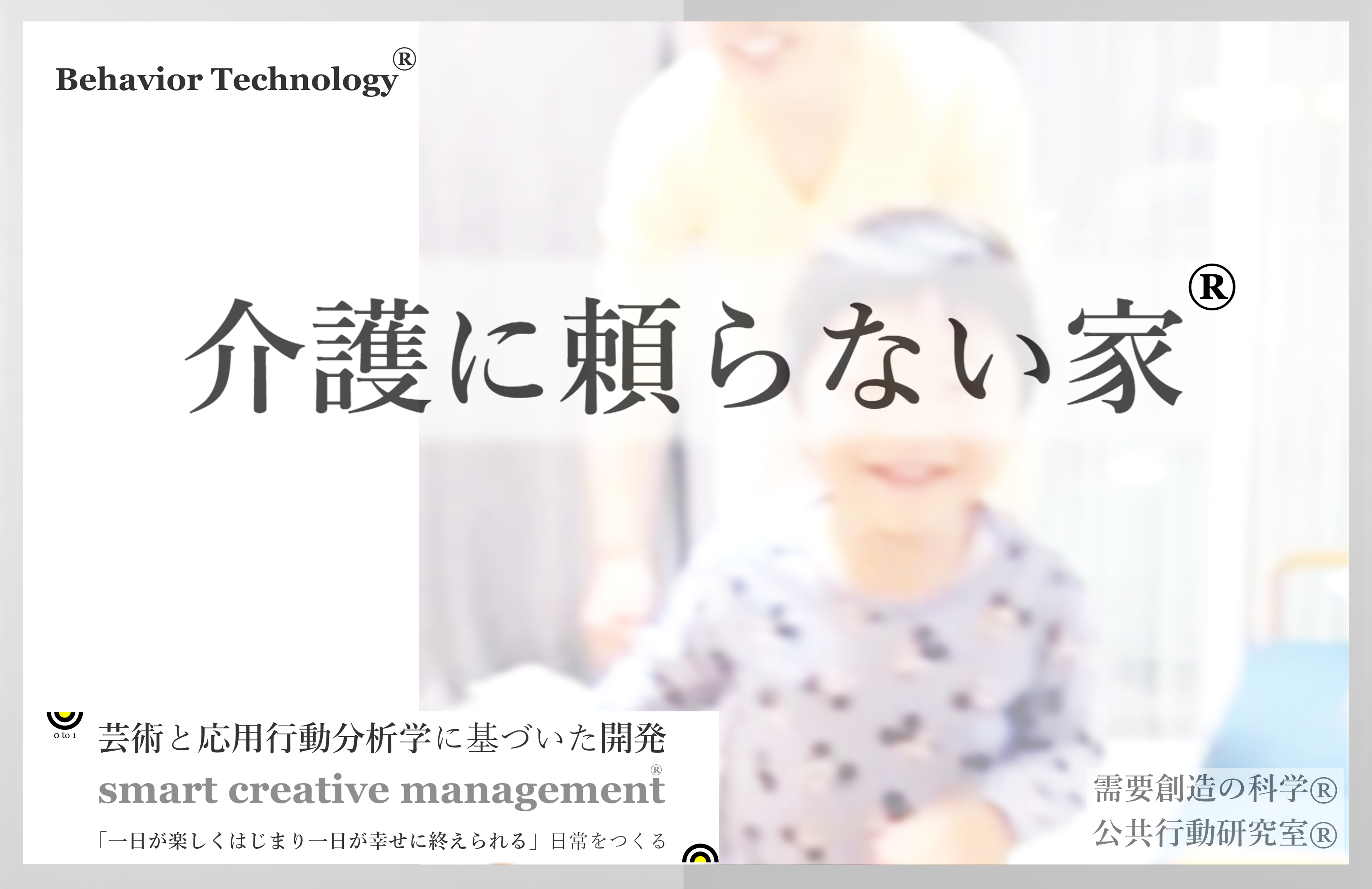 その実現には、弊社のABAオペレーションズ研究センターが、企業の人材開発で培っている、人に優しく行動をうながし、続けられるように働きかける人間の科学にもとづいた“Nudge Product® ※1” の知見を活かしています。Nudge Productは応用行動分析学(ABA)の“行動テクノロジー® ※2” を活用しています。「介護に頼らない家™」は、住環境にNudgeを取り入れたはじめてのケースです。Nudge Product®は、強制することなく、人の行動を優しくうながし、続けたくなるように強化する小さな刺激です。医療費を抑えるために行政が取り入れています(しかし、継続し習慣化するための強化が不足するケースも見受けられる)。今後、住環境に求められることは、慣れ親しんだお家の中で「負担感少なく、日常生活に必要な身体機能の低下を予防する”行動の数”を安全に増やしていく」ことです。そのために応用行動分析学にもとづいたNudge Product®は実験検証もされ使い勝手が良い。