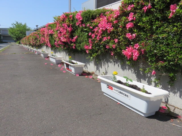 マリーゴールドやサルビア、アゲラタムをプランターに植え、隣接する道路沿いに設置。色鮮やかな生花で地域の美化活動に貢献しています。