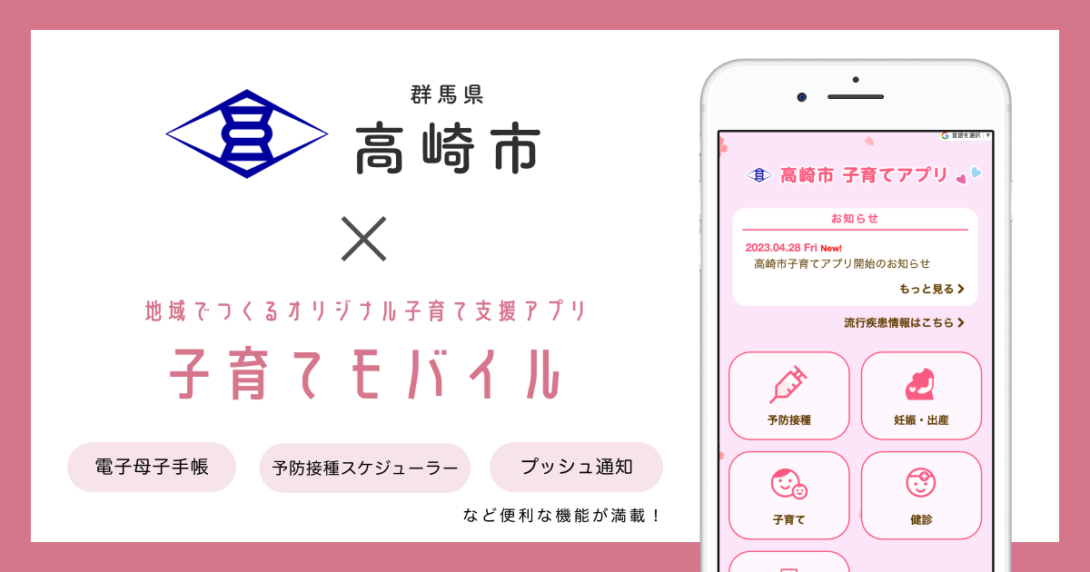 ミラボ、群馬県 高崎市で 子育て支援アプリ「高崎市子育てアプリ」提供開始