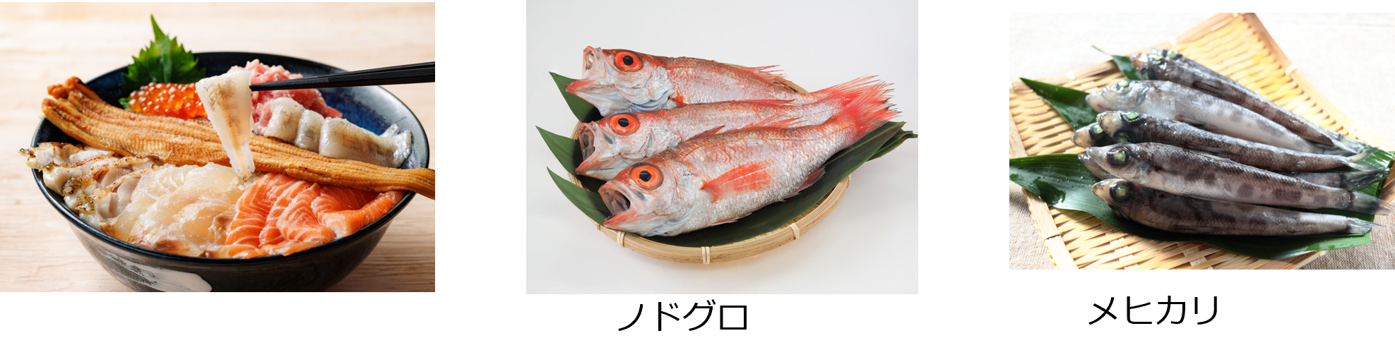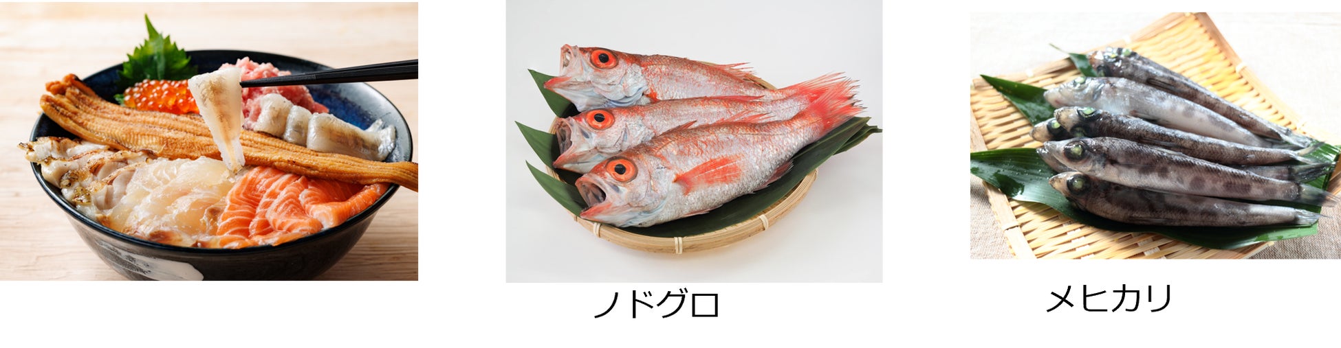 「なこそ処ちょんまげ」ブースでは、福島各地の自慢の魚介を贅沢にてんこ盛りにした「ノドグロ炙りとメヒカリ刺し入りふくしま全部のせ丼」を提供します。今回新たに加わったのが、ほとんど地元でしか出回らないメヒカリ刺し。深海魚で、目が青く光ることからその名が付いたメヒカリは、福島県いわき市の〝市の魚〟にも指定されいます。唐揚げや干物が定番ですが、地元では刺し身や寿司ネタとしても食されています。今回、水揚げされたばかりの新鮮なメヒカリを一尾ずつ丁寧に切り身にし、急速冷凍して真空パック。新鮮な状態でご提供します。〝白身のトロ〟と呼ばれるノドグロは皮つきのまま炙り、甘みの濃いヒラメは漬けにしています。