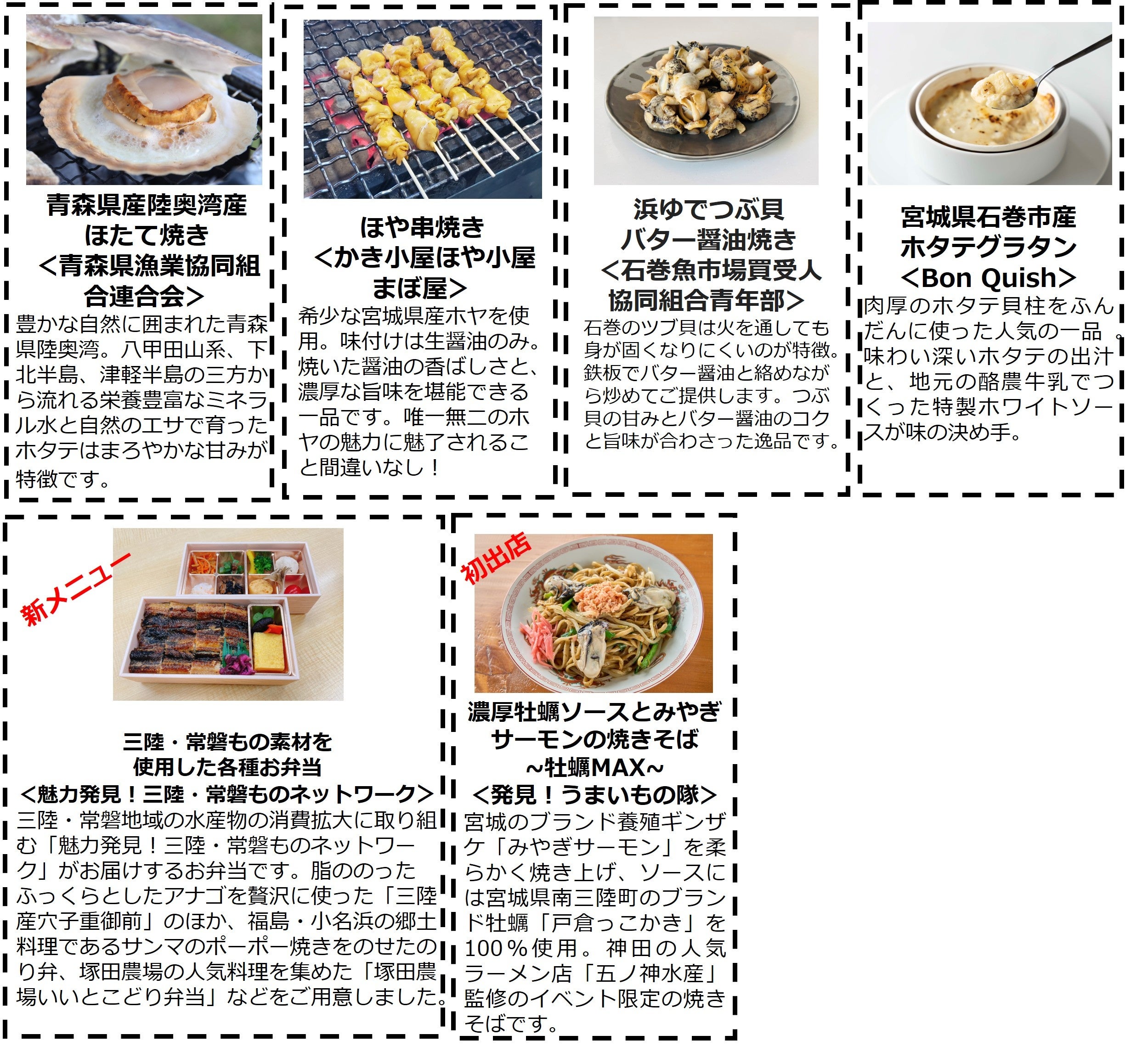 ※出店店舗、メニューは変更になる可能性があります。水揚げ状況等によっては産地や食材が変わる可能性があります。
