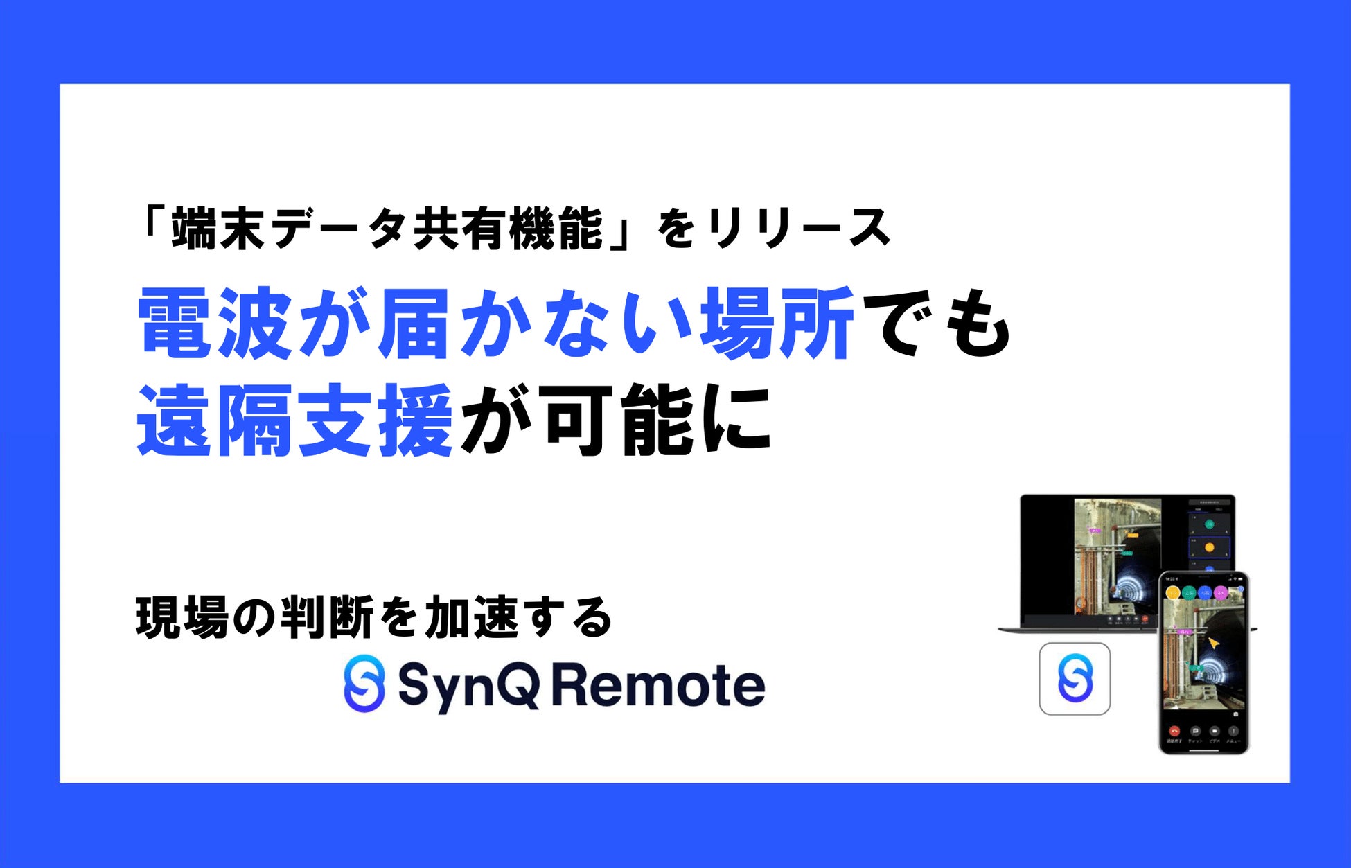 電波の届かない現場でも遠隔支援が可能に!現場仕事に特化した遠隔支援ツールSynQRemoteが新機能をリリース