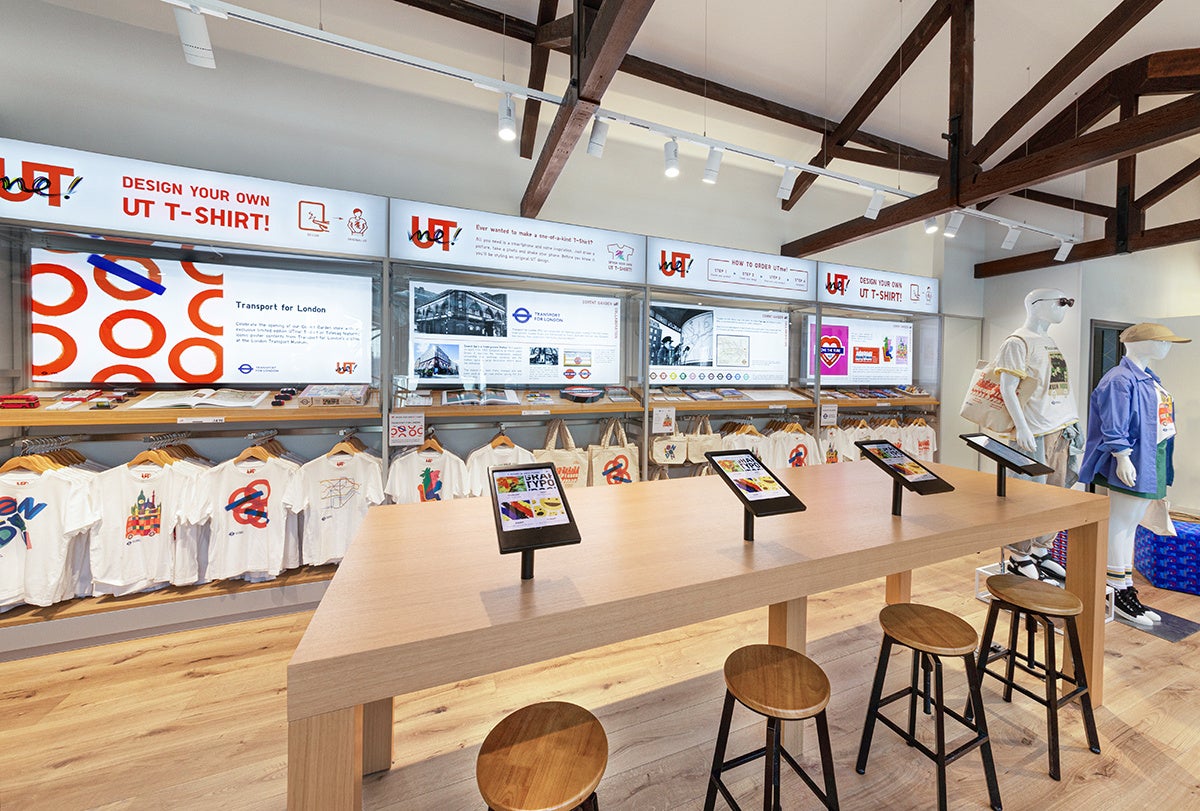 新店舗3階には、ユニクロのグラフィック T シャツブランド「UT」専用のスペースを設けており、最新のUT商品とともに、UTの20周年を記念して過去のアーカイブ・デザインをディスプレイ。また、同じロンドンのグローバル旗艦店ユニクロ311オックスフォードストリート店に続いて、オリジナルデザインのアイテムを作ることができるサービスUTme! を導入します。さらに、ロンドン交通局(TfL)とUTme! とのコラボレーションにより、ロンドンを象徴する地下鉄のロゴマークや路線図、歴史的なポスターからインスパイアされた、コベントガーデン店限定の特別デザインを展開します。