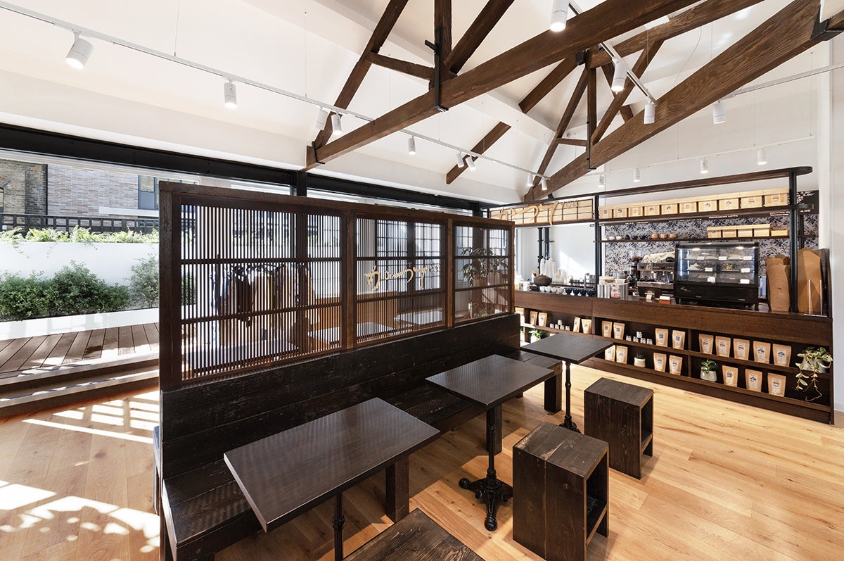 同じく3階のギャラリースペースには、英国のユニクロ店舗で初となる店内カフェスペースを設けました。店舗のオープンに合わせて、ロンドンを拠点とする日本茶カフェKatsute 100とコラボレーションし、カフェと屋外のテラス席で和テイストのドリンクや軽食を提供します。
