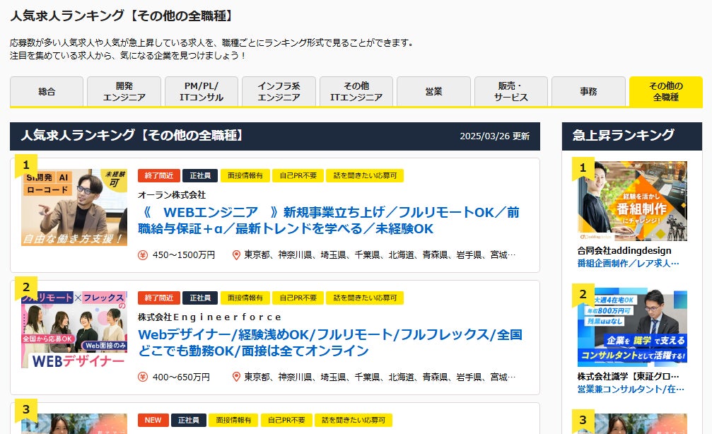 「自分らしく働きたい」「自らキャリアを切り開きたい」と考える方々にとって、他にはない魅力的な選択肢となっており、職種や経験の垣根を越えた支持を集める結果となりました。