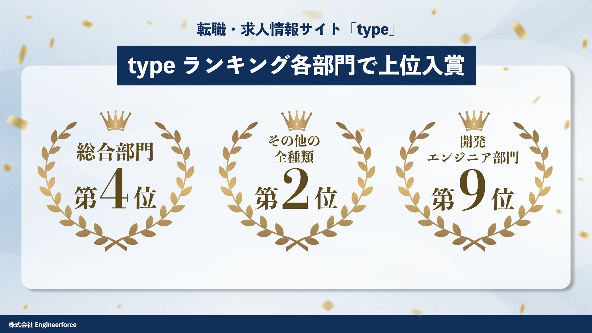 【株式会社Engieerforce】Type転職で転職ランキング2位を獲得!