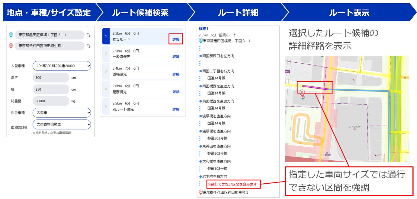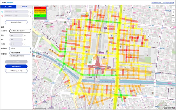 Area Markerに、道路幅可視化機能・大型車ルート検索機能を追加~ 大型車による物流や移動の現場で、安全かつ効率的な運行計画をサポート ~