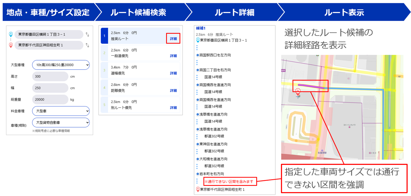 ■「大型車ルート検索機能」 画面イメージ