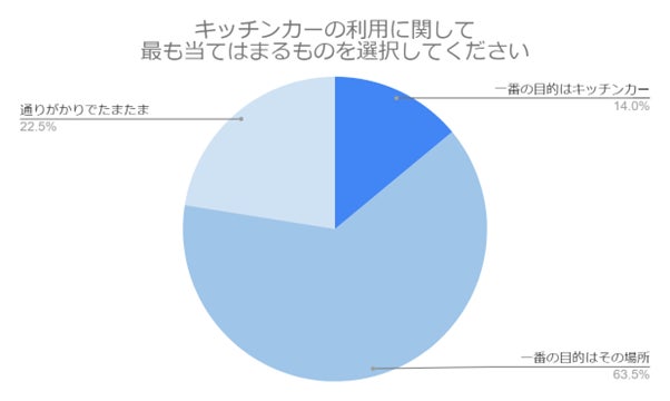 これに対し、キッチンカー自体を目的として利用する人は14.0%にとどまり、少数派であることが明らかです。