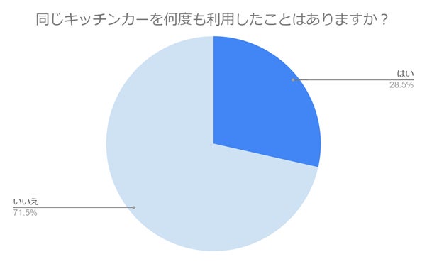 続いて、「同じキッチンカーを何度も利用したことはありますか?」とお聞きしたところ、28.5%の人が「はい」、71.5%の人が「いいえ」と答えました。