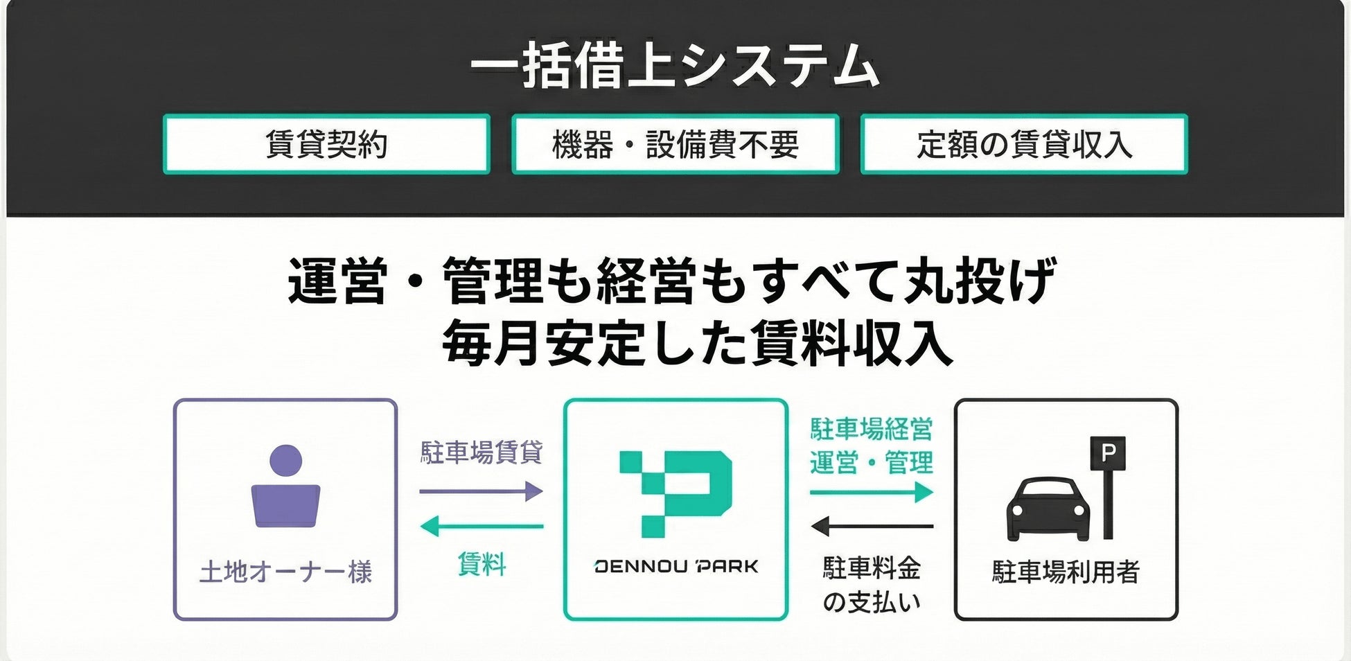 DENNOU PARKの「一括借上方式」で毎月安定収益
