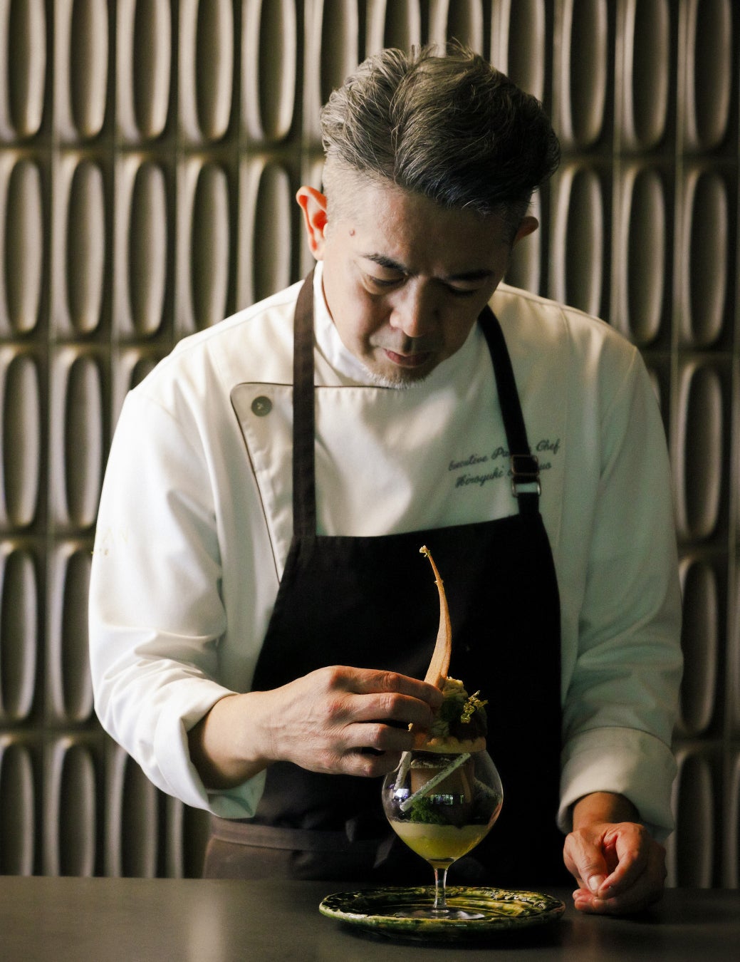 関西のラグジュアリーホテルにて、約40年近い経験に培われた技術と溢れる感性で、独創的なスイーツを数々開発。菓子職人として、ディスプレイづくりもこなし、デコレーションや細工菓子のコンテストにて大阪府知事賞や最優秀賞などの受賞歴を持つ。開業直後から好評な和菓子に見立てた洋菓子のアフタヌーンティーは、目にも楽しく、口福なひとときを届ける。