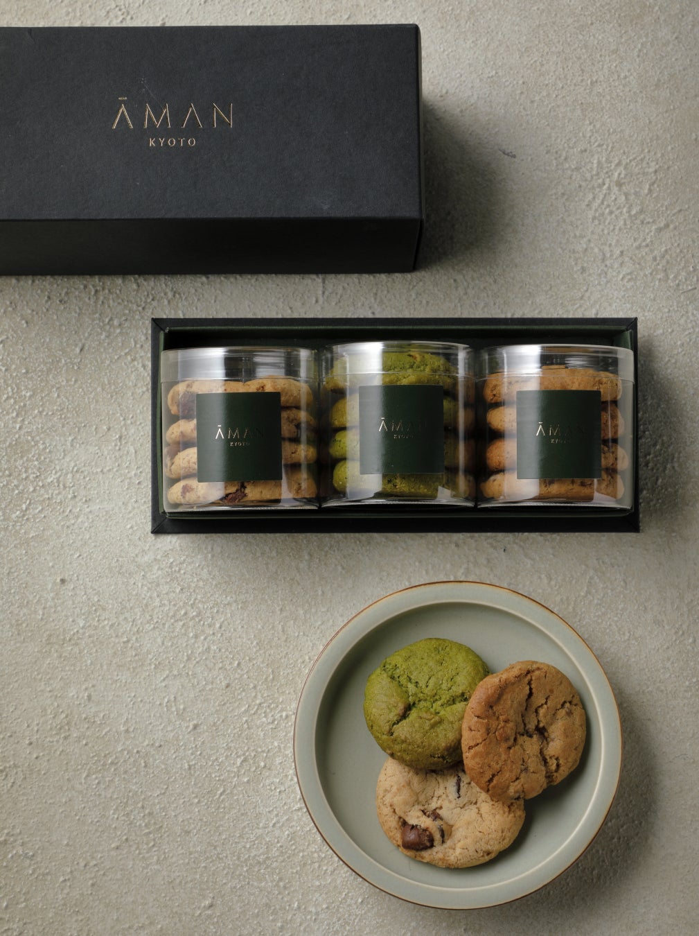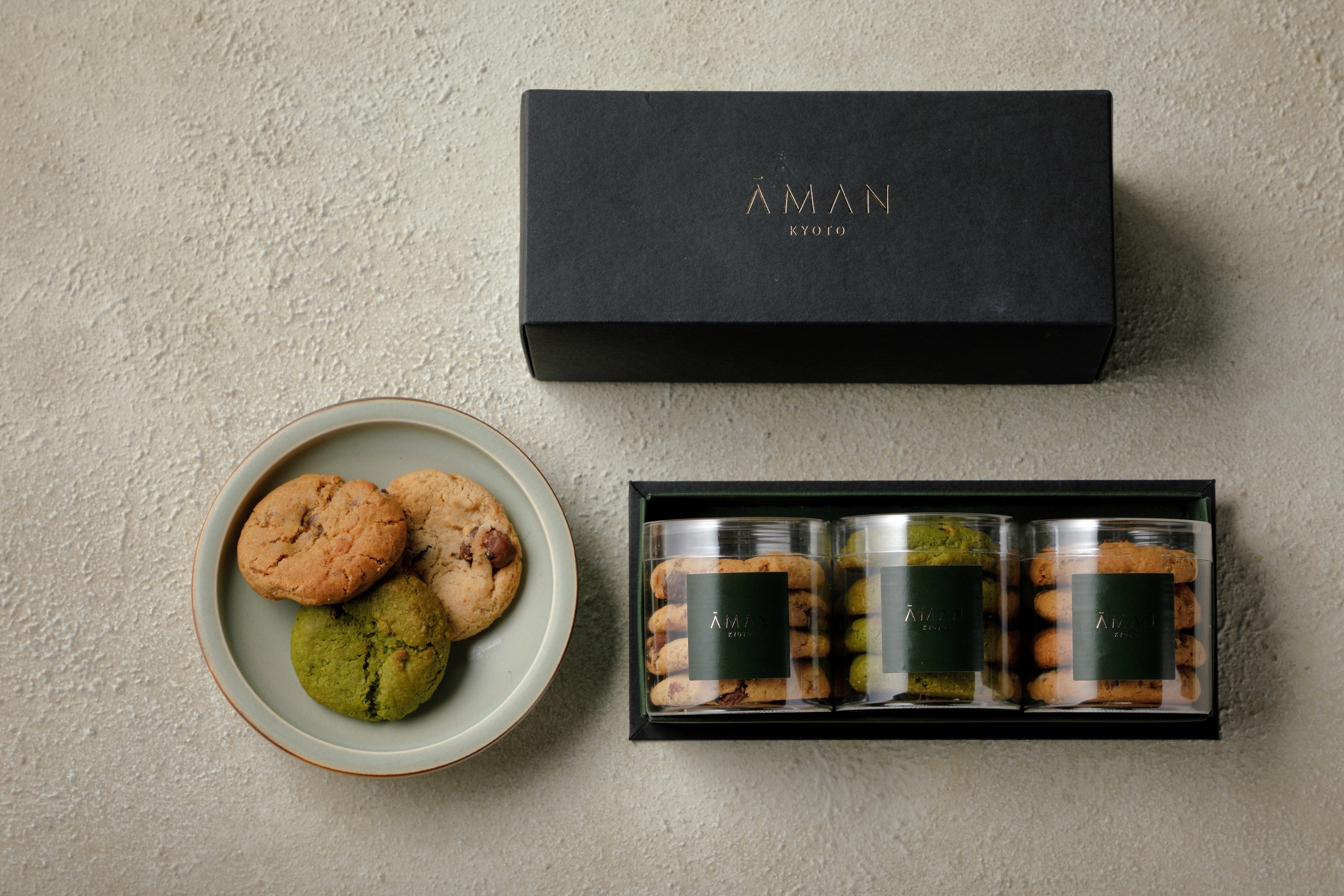 100%プラントベースの素材を使い、京都のエッセンスを合わせた3種の「ヴィーガンクッキー」が新登場いたしました。濃厚な京都・和束町産のオーガニック抹茶に柚子を忍ばせ、渋みの中に爽やかな酸味が広がる和の風味、福知山産の生姜を使ったジンジャー生地にチョコチップを合わせたフレーバー、そしてどこか懐かしさを感じる京都・丹波産黒豆きなこと小豆の味をご用意しております。風味豊かなクッキーを丁寧に淹れた紅茶や日本茶とともにご堪能ください。