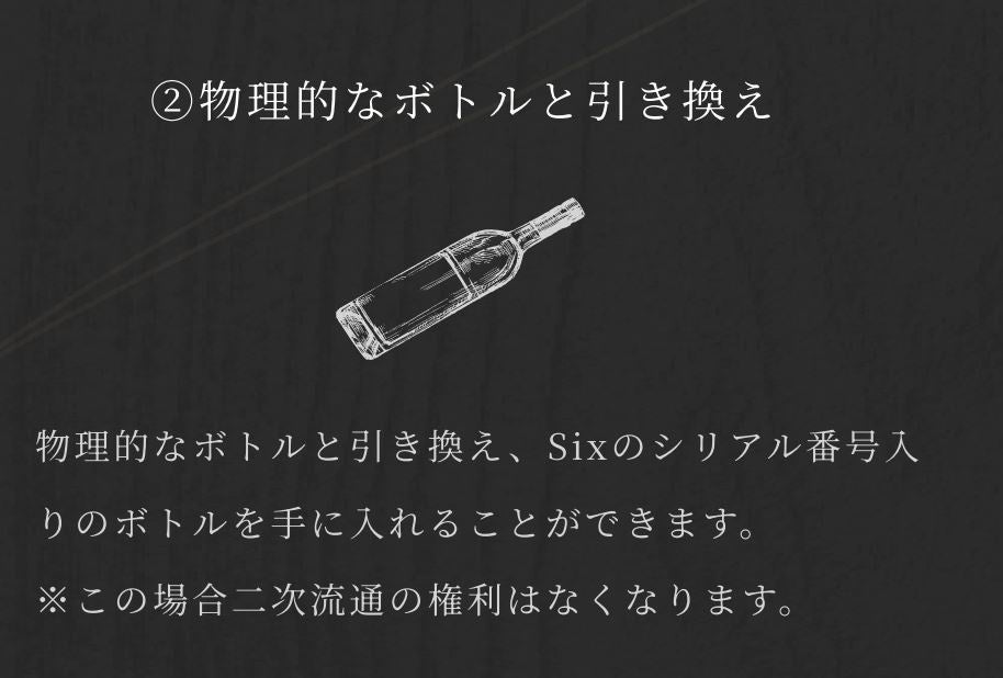 500本の限定ボトルには、1~500のシリアルナンバーが刻印されており、そのシリアルナンバーと同じ番号のNFT証明書を発行し、販売します。