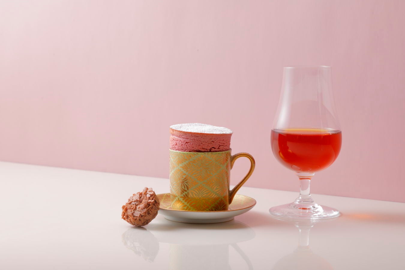 柔らかな光を取り込む幻想的なミラーのティースタンドのプレゼンテーションでお届けする彩り豊かな全5種類のスイーツ。甘酸っぱい桜とベリーのジュレを濃厚なフロマージュブランのムースの中に忍ばせた「桜とフロマージュのムース」は、滑らかなムースと、春の香りが鼻から抜ける心をほどく味わいに仕立てました。上品な甘さのスイーツには、ゆっくりと広がるまろやかな甘みのなかに凛とした味わいが顔をのぞかせるルイボスブレンドを。フルーツやハーブのさっぱりと抜ける味わいは、それぞれのスイーツを引き立て、バランスの良い味わいへと昇華します。