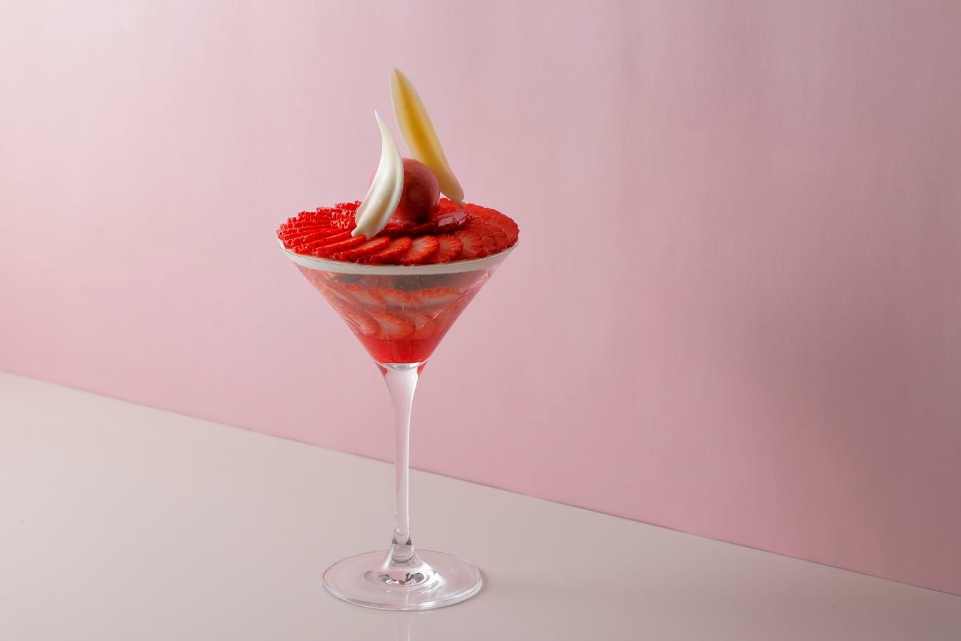 春の香りを閉じ込めた華やかなパフェは、甘酸っぱいラズベリーと桜のソース、京都産いちごが織りなす美しく洗練されたビジュアルに心躍ります。軽やかなラングドシャの食感、エルダーフラワーのジュレが奏でる華やかな香り、バニラクリームシャンティーの滑らかさが瑞々しいいちごと重なりあい、一口ごとに異なる味と食感のハーモニーをもたらします。芳醇な香りを纏ったいちごをお楽しみいただける贅沢なパフェです。
