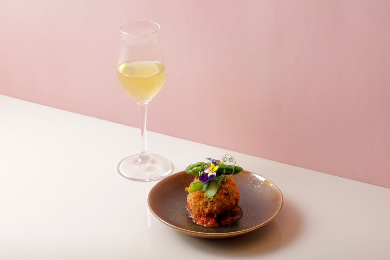 春の訪れを感じさせる旬のモリーユ茸を贅沢に使ったリゾットで作る揚げたてのクロケット。サクサクとしたクリスピーな衣に包まれたリゾットは、茸の豊な香りとともに、濃厚でとろりとした絶妙な味わいをお楽しみいただけます。レモンドレッシングであえたアスパラガスとフレッシュのトマトソースが軽やかなアクセントとなり、全体を爽やかな印象へと仕立てます。ペアリングには、まろやかで甘みのある水出し玉露を。クロケットの濃厚さをすっきりとさせ、洗練された爽やかなマリアージュを演出します。