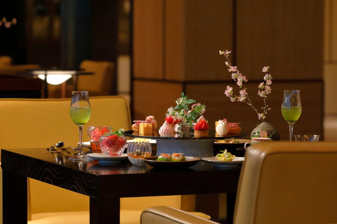 黄金色の柔らかな明かりと洗練とした雰囲気を持つ『ザ リビングルーム』では、肌に触れる空気が和らぎはじめ、春の訪れに心躍るこの季節、日本の春を象徴する桜の優美さをモチーフにした「桜アフタヌーンティー」と、旬を迎える瑞々しいいちごを贅沢に使用した春満載のデザートメニューをご用意いたします。店内には桜の花をふんだんに配し、淡い桜色が広がる穏やかな空間で心癒されるお花見シーンを演出いたします。