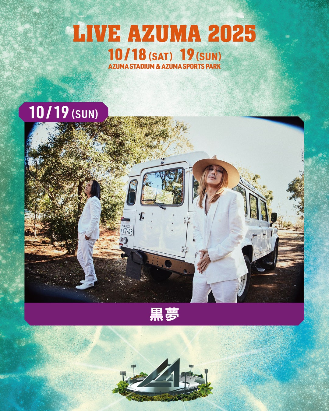 出演が決定したのは、デビュー30 周年を迎え、今年の復活公演もソールドアウトさせた清春(Vo)と人時(B)の 2 人からなるロックユニット、⿊夢。楽曲のクオリティが世界からも注目され、日本の大型フェスはもちろん海外でのツアーやフェス参加などワールドワイドな活躍を見せる D.A.N.。 メンバー3 人それぞれが作曲、アレンジ、プロデュースを手がけ、音楽的快楽とストーリーテリングの巧みさを併せ持ったバンド cero。野蛮さと繊細さを兼ね備え、アッパーな楽曲からコンシャス、抒情的な楽曲まで幅 広く乗りこなす作詞力と音楽性、そしてエモーショナルなライブパフォーマンスで、2022 年の LIVE AZUMA 出演でも大いに会場を盛り上げた田我流。SOUL、R&B、HIP-HOP、JAZZ などをベースにしながらも、メンバーそれぞれのルーツを反映した幅広い音楽性を持ち、音源のみならず映像、アートワークなどあらゆる制作物を自身で手掛ける。S.A.R. 。以上の音楽性豊かなラインナップが発表されました。