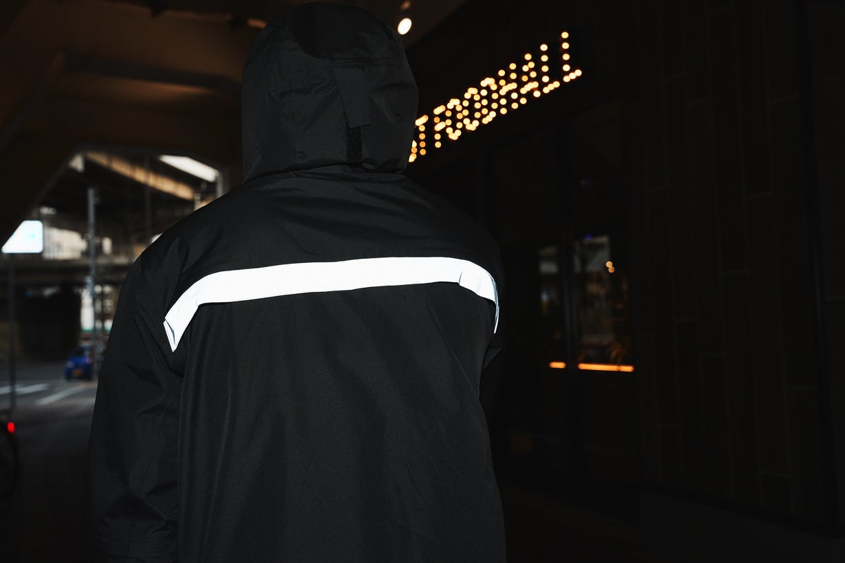 冬場には、厚手の服装の上でも着用いただけるように、かなりゆったりとしたシルエットに仕上げました。オールシーズン活躍するレインジャケットです。