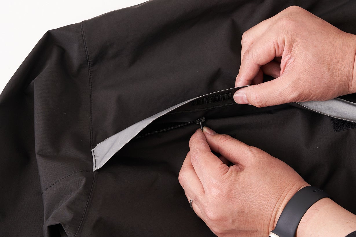 背中にベンチレーションのあるジャケットは、閉じることができないものが多いですが、背中のベンチレーションを止水ファスナーで閉じることが可能。