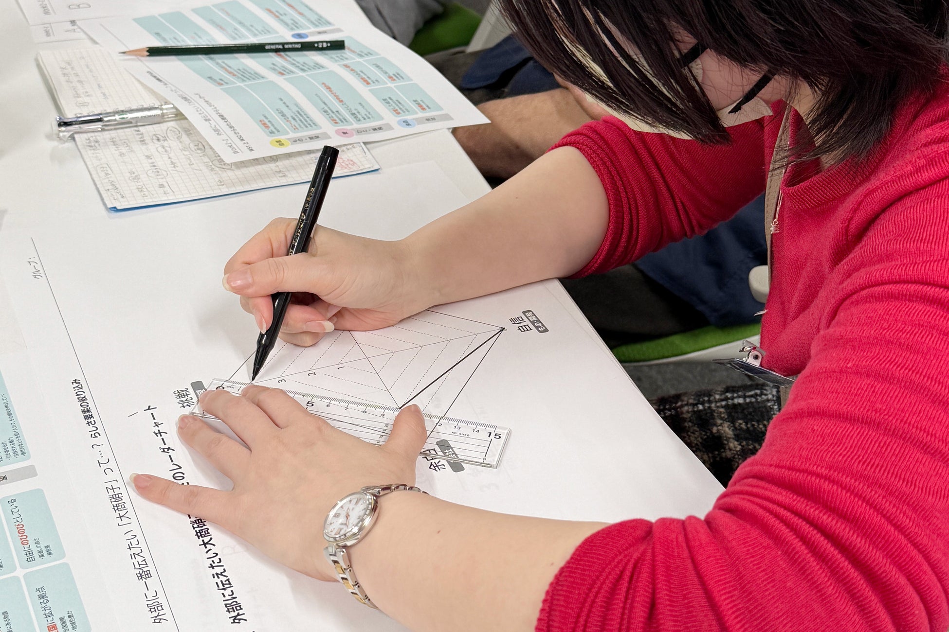 構想段階では、思考過程や発想を可視化しながらクライアントと共に考えを深め、共感を呼ぶ未来をイマジネーション豊かに描くことで、目指すものを明確化し、実現に向けてのエネルギーを引き出します。