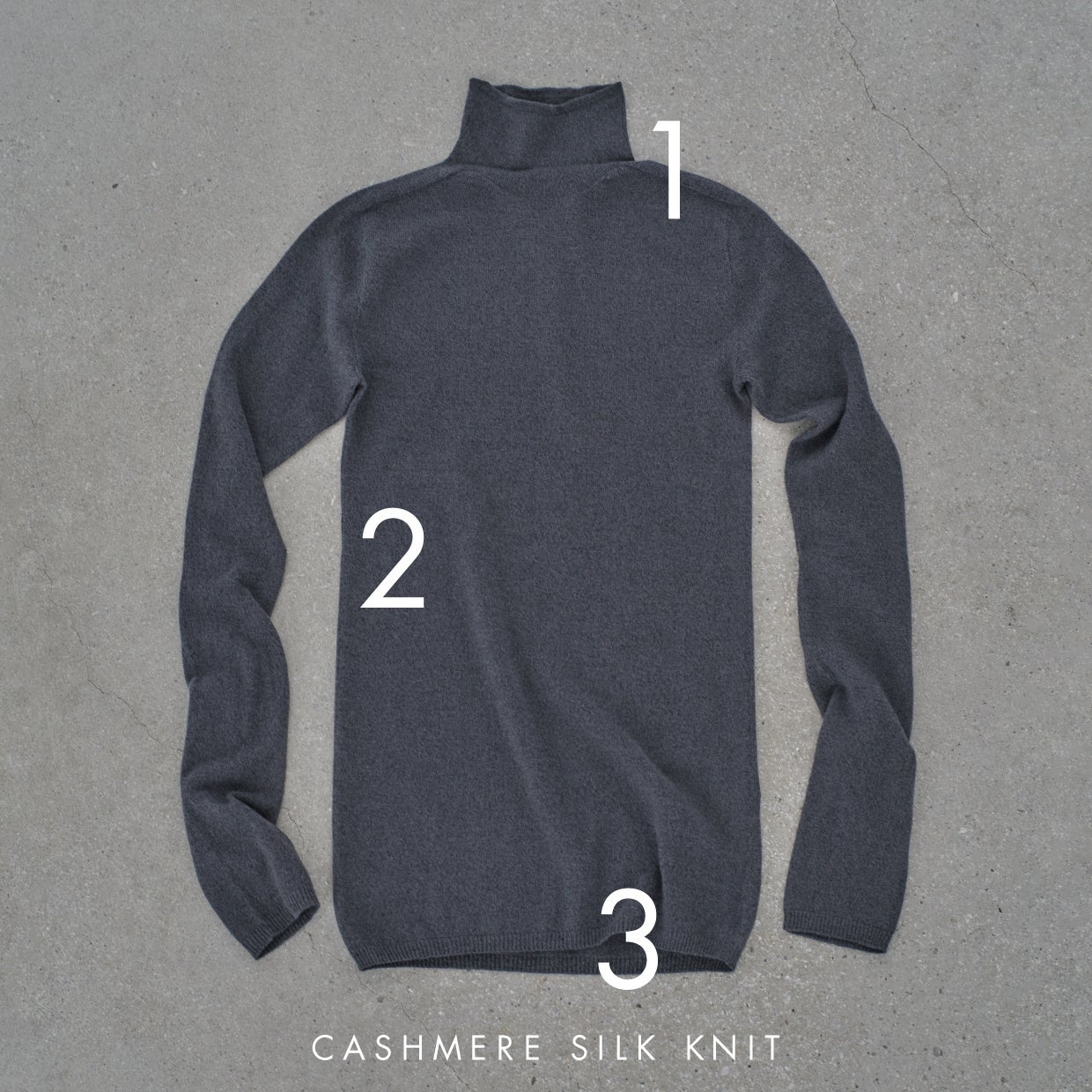空気を含み軽くて柔らかいカシミヤと、滑らかで光沢感のあるシルク。
