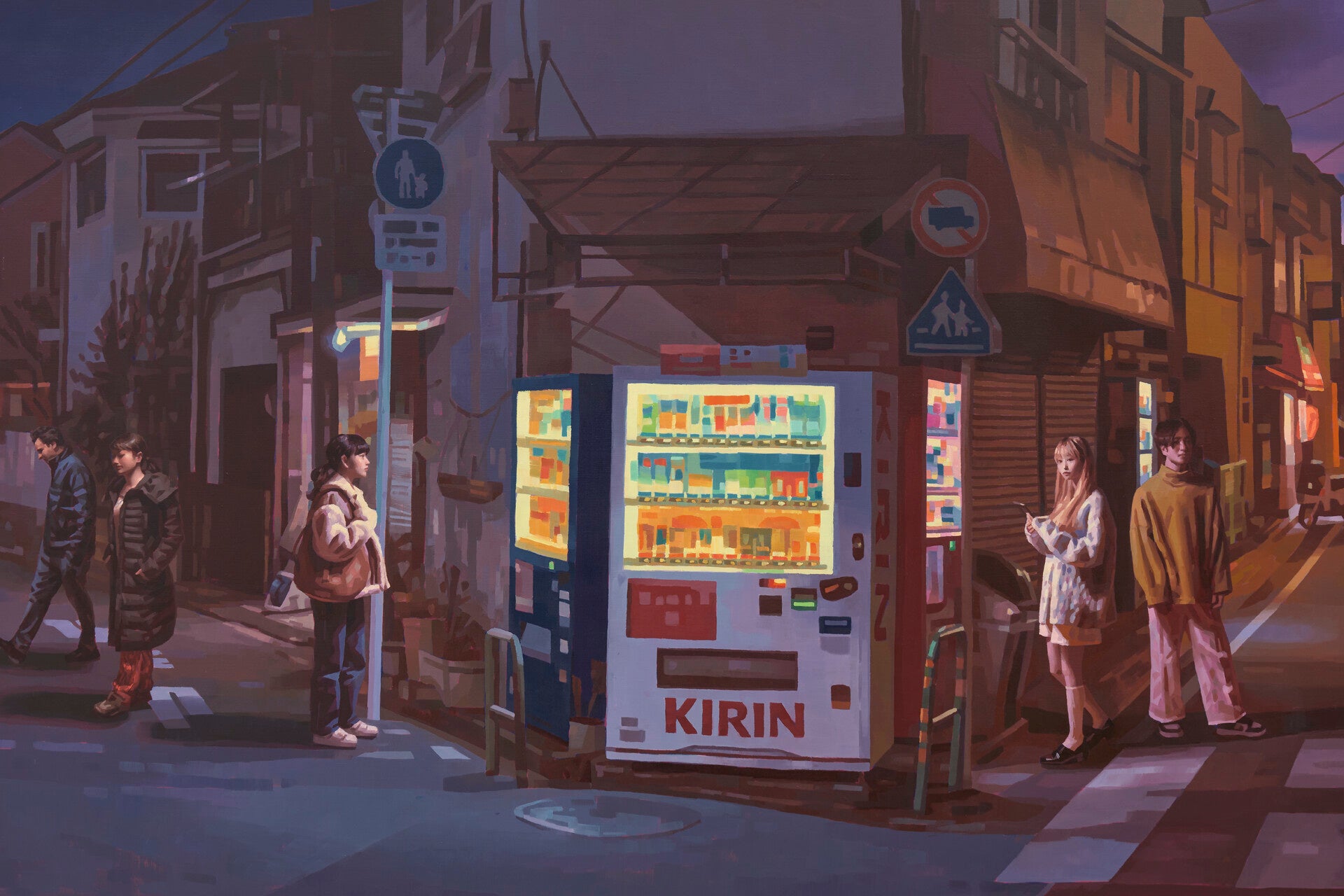 銀座 蔦屋書店では、現代アーティスト・森本啓太の初の作品集刊行を記念し、個展「KEITA MORIMOTO Illuminated Solitude」を開催します。森本は風景画や人物画を、レンブラントやエドワード・ホッパーを連想させるドラマチックな光の表現を用いて、古典的な技術を現代に持ち込み、ありふれた街並みを劇的な世界へと変貌させます。自動販売機やファストフード店、駐車場といった日常的な主題に焦点を当てることで、森本は現代の生活における構造的な脆弱性や道徳的規範に疑問を投げかけてます。本展では、2021年に日本に活動拠点を移した後に制作した作品を中心に、作品集の表紙となる2枚組の大作《Between Our Worlds》(2024)を含む絵画作品13点のほか、初の木版画作品2点を展示します。また本展と併せ、11月9日(土)より銀座 蔦屋書店にて作品集の販売を開始します。