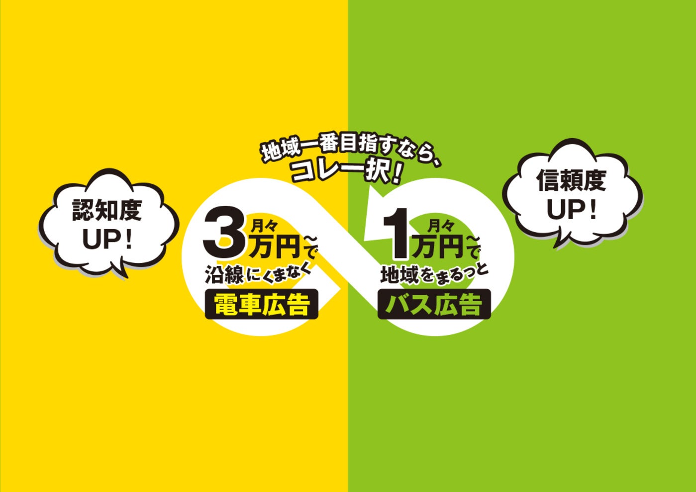 そして導き出された結論は、他の広告手法と比較して当社が独自で取り扱う交通広告がそなえる優位性である『地域密着・ローコスト』を、わかりやすく伝えるということでした。